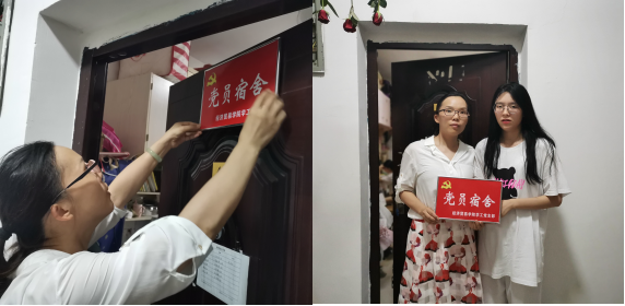经贸学院党小组组长孔霞同志为党员宿舍挂牌