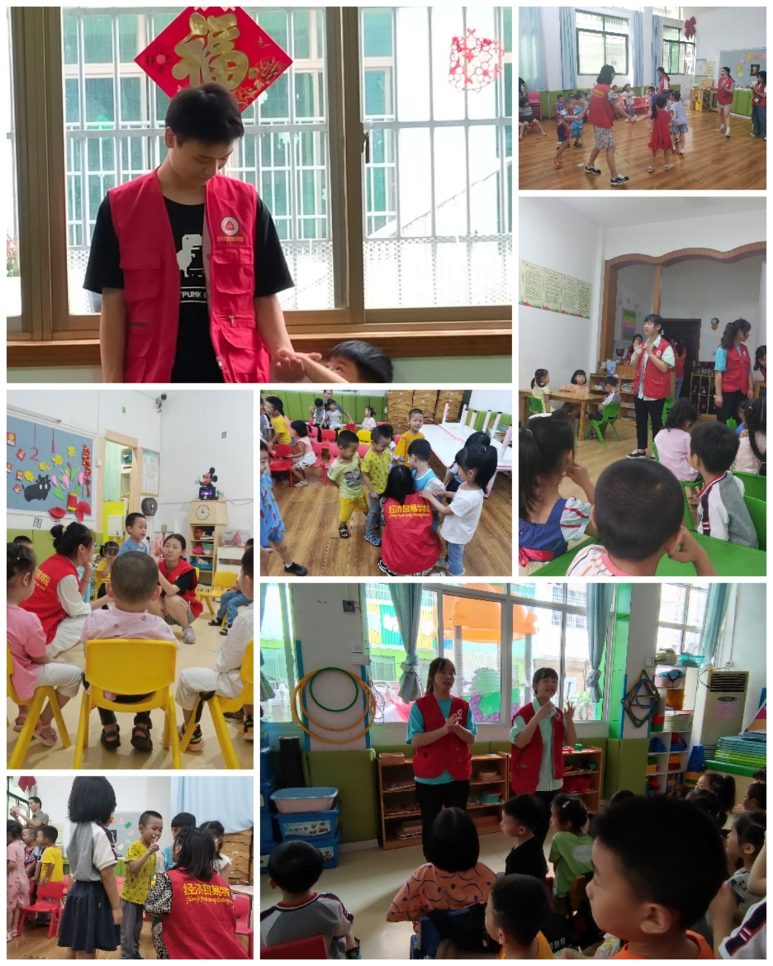随后,志愿者们进入小班、中班、大班教小朋友们唱《我们是共产主义接班人》。在小班,学唱歌曲之余,陈瑶和张佳林带领小朋友们表演才艺,为小朋友们讲党徽的由来和形状;在中班,小朋友们在学习歌曲之后玩起‘送鸡毛信’的游戏,个个玩得不亦乐乎;在大班,在邹桂香和唐琴妹的指挥下,响起整齐好听的童声。