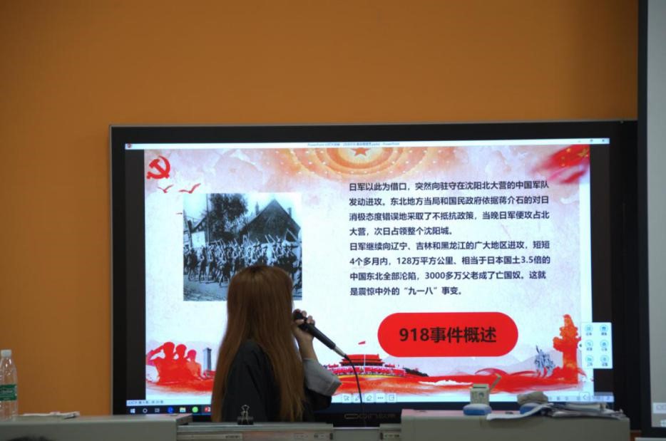 首先,第二党小组中共党员徐意同志在第二教学楼101经济贸易学院分党校教室带领同志们回顾“九一八事变”这一历史事件,提醒大家勿忘国耻、牢记历史,号召全体党员积极学习张学良、杨虎城两位将领的爱国精神。