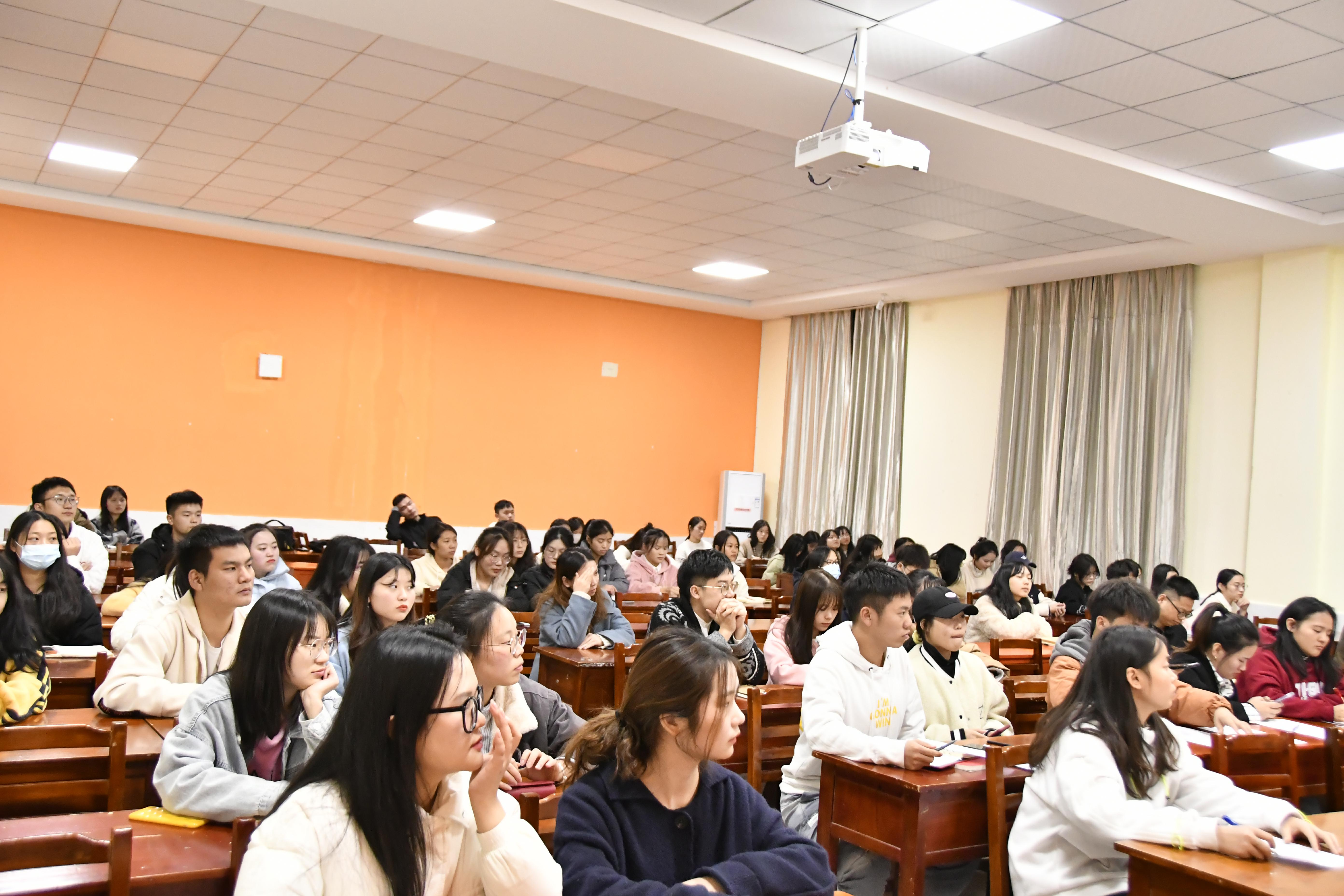 ▲同学们认真听演讲的画面