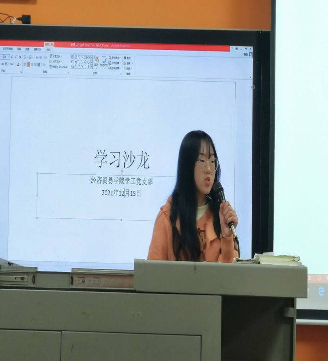 (通讯员 杨灯华 邓亚平)为使支部党员和入党积极分子以榜样为“镜”,汲取榜样力量,砥砺奋进前行,2021年12月15日晚上19:00,经济贸易学院学工党支部组织全体党员和入党积极分子在二教101教室(经济贸易学院分党校)开展“榜样星火·照亮百年征程”学习沙龙。本次活动由“青春向党”入党积极分子先锋营第六小组李爱同学主持。