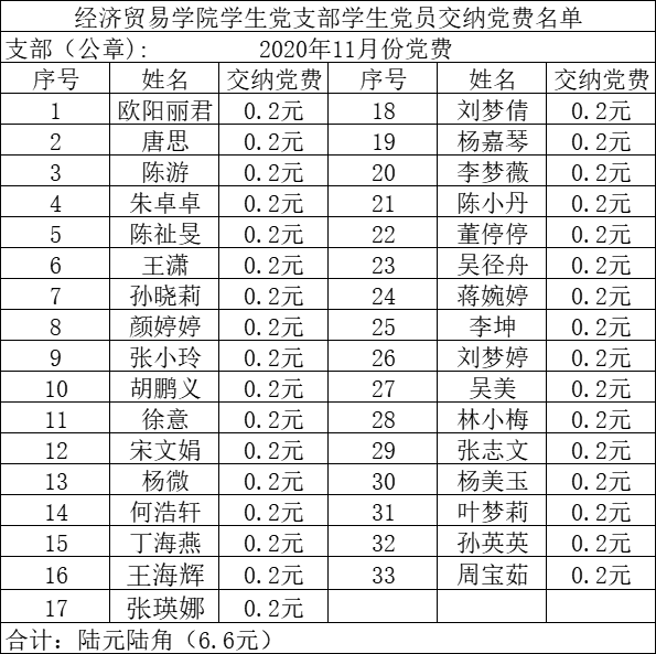 (通讯员 周自立)交纳党费并非一件“小事”,它是一种忠于信仰的基本表现形式。因此,2020年11月3日,经济贸易学院学工党支部特组织开展第十一期“主动交纳党费,做合格党员”主题活动。此次活动由经济贸易学院学工党支部全体党员参加。