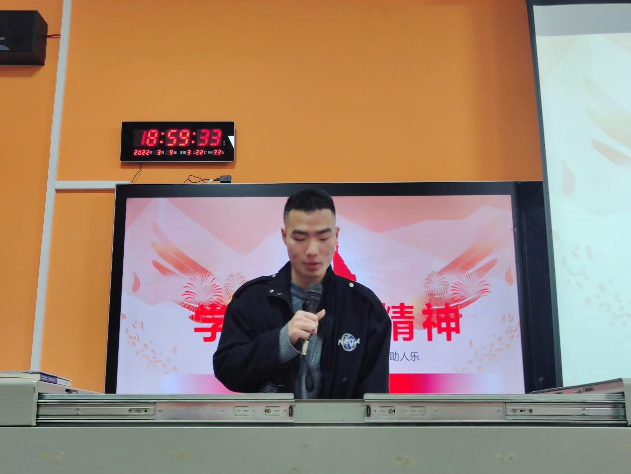 (通讯员 柳邵琴)三月风,学雷锋。为大力弘扬雷锋精神,在校园营造“人人学雷锋,时时做雷锋”的浓厚氛围,2022年3月9日晚上19:00,经济贸易学院学工党支部联合经济贸易学院团总支于二教101教室开展“雷锋精神伴我行”主题演讲比赛。本次活动由入党积极分子徐斌峰同学主持。