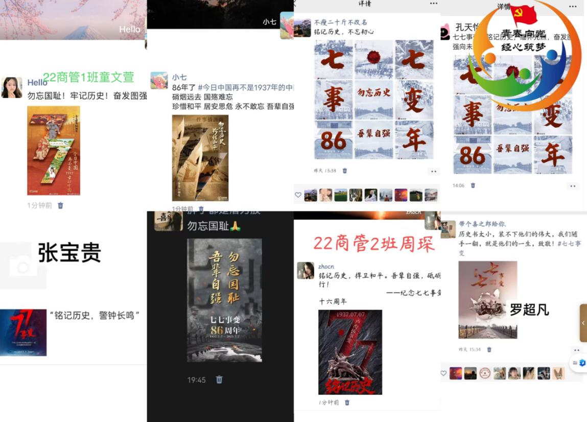 最后,大家纷纷发“朋友圈”纪念“七七事变”86周年。鉴往事,知来者。战争硝烟虽散,可弹痕犹在,铭记历史,吾辈当自强!