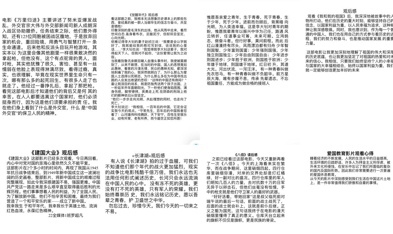 “《建国大业》这部影片我已经看过多次。今日再回看,依然心潮澎湃。影片在2个多小时的时间内,再现了我国从1945年抗日战争结束后,到1949年新中国成立这一波澜壮阔的历史画卷。整部影片将新中国成立的艰难过程完整展现。这令我深感建国不易,强国更难。中国共产党这一路走来是多么的艰辛!党事事想着人民的利益,为了全国人民,为了解放新中国,无数共产党员不怕辛苦和困难,最终为我们建立了和平安乐的家——成立了新中国。”22级全媒体1班罗超凡分享道。