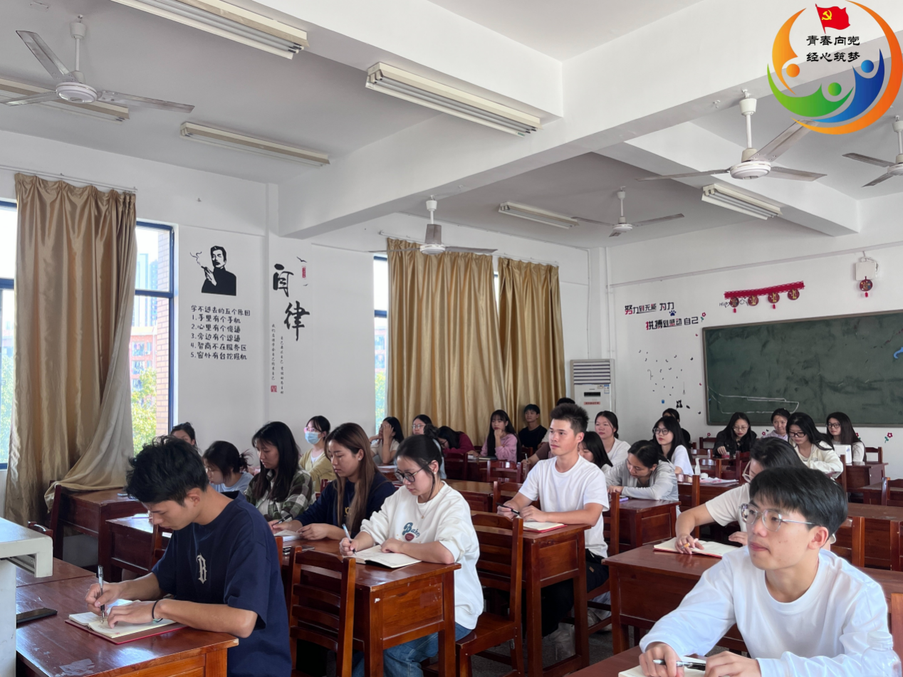 (通讯员 石鑫)2023年10月17日中午12:30,经济贸易学院学工党支部在博思楼309教室组织开展“弘扬中国精神,展现中国力量”主题党日活动。此次活动由第三期”青春向党”先锋营入党积极分子向粲同学主持,经济贸易学院学工党支部全体党员、入党积极分子参加此次活动。