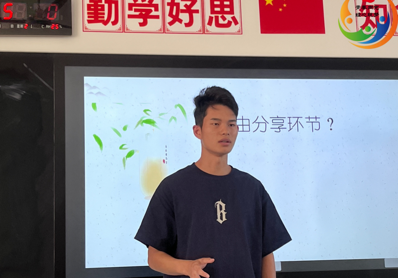 紧接着,主持人就本次主题“弘扬中国精神,展现中国力量”组织大家展开了自由交流讨论。其中,21级茶艺2班肖伟说道:“在现在的和平年代,依旧有着其他国家在发生战乱,使得民不聊生、家破人亡,人民在战乱中遭受着无限苦难。而在国际形势严峻的情况下,我们中国依旧能如此安全,是因为有国家的保护,有人在替我们负重前行。这让我不禁感叹国家力量之强大,以强大的力量庇佑了万千的中国民众。”22级连锁1班赵浪欣分享道:“我对于中国力量最直观的感受就是国家在军事、科技方面的强大。我国军事上有着世界上数一数二的军队力量,护佑中国人民的平安,科技上不断创新发展,科学技术日益强大,可见中华民族伟大复兴指日可待。”