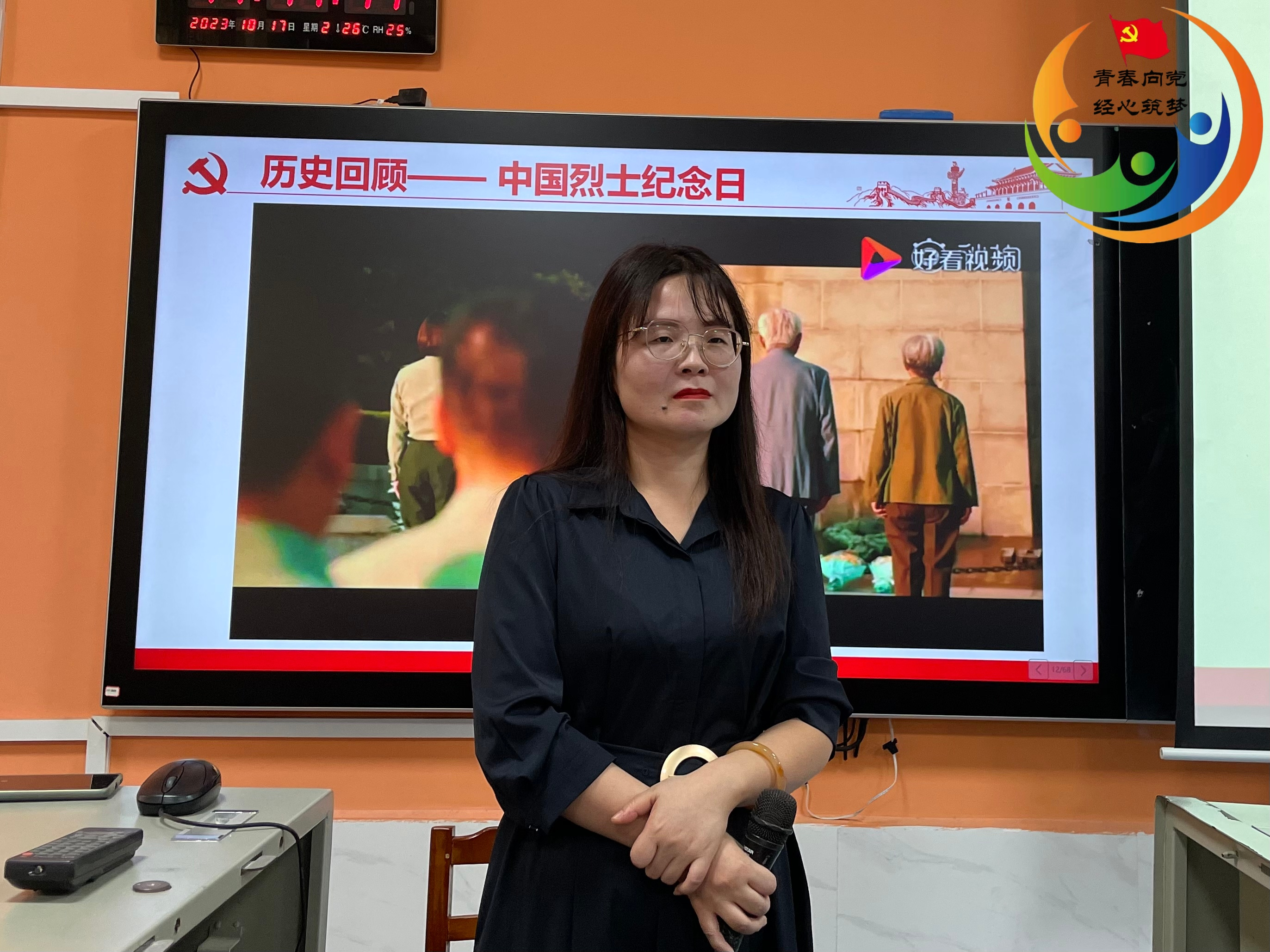 接下来,方老师组织大家观看了电影《跨过鸭绿江》片段。她借用电影中的情节将“抗美援朝精神”娓娓道来,要求大家在爱党爱国中唱响“青春赞歌”。