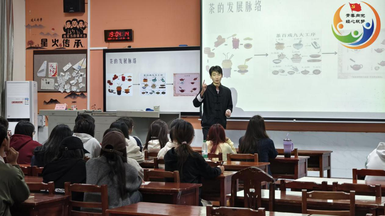 (通讯员 周贞)为深入挖掘中华优秀传统文化内涵,提升广大青年文化素养和民族自豪感,2024年11月12日晚7点,经济贸易学院学工党支部在博学楼101教室(经济贸易学院分党校)组织开展“茶‘和’天下”主题党日活动。此次活动由23级市场营销(楚怡)2班周创主持,经济贸易学院学工党支部党员、入党积极分子参加此次活动。