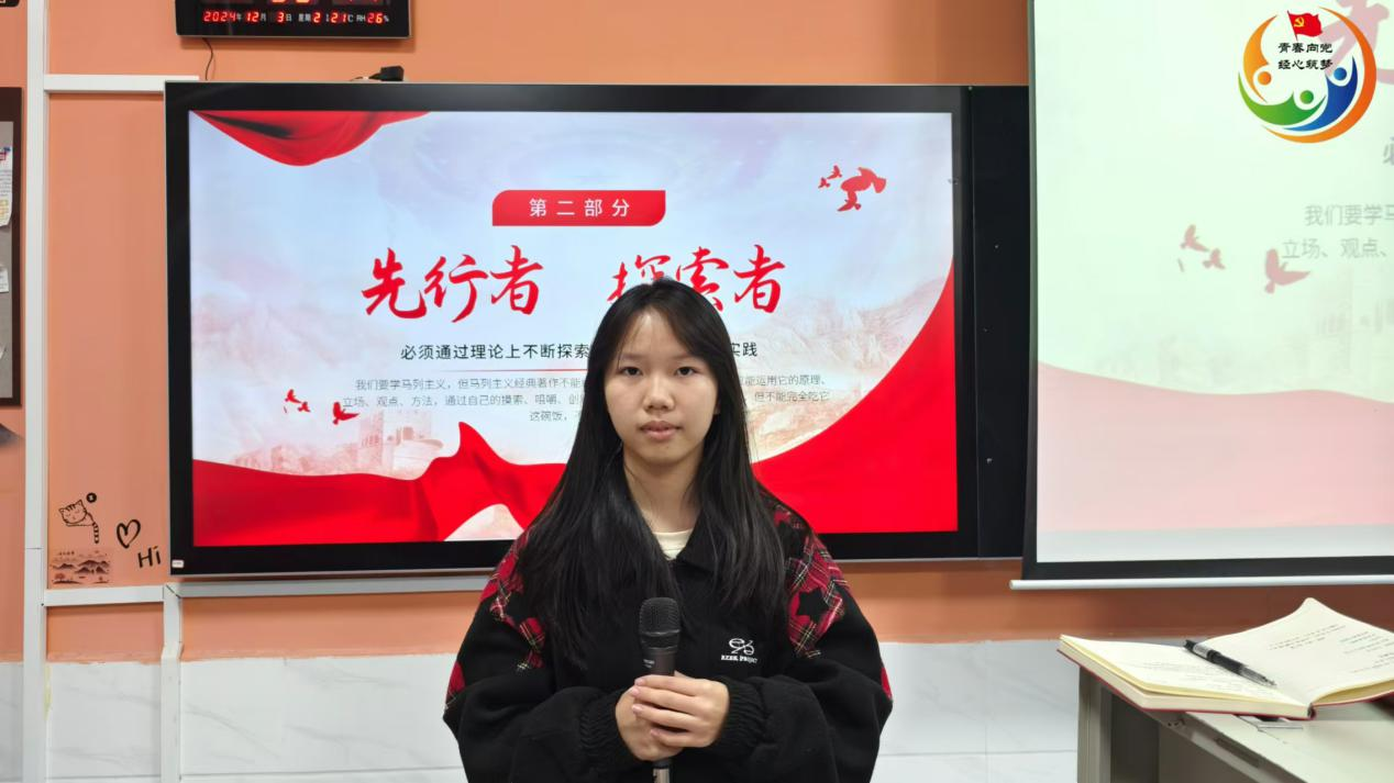 (通讯员 周贞)为深入学习贯彻习近平新时代中国特色社会主义思想,2024年12月3日晚7点,经济贸易学院学工党支部在博学楼101教室(经济贸易学院分党校)组织开展“必须坚持守正创新”主题党日活动。此次活动由23级全媒体广告策划与营销2班的周睿琪主持,经济贸易学院学工党支部党员、入党积极分子参加此次活动。
