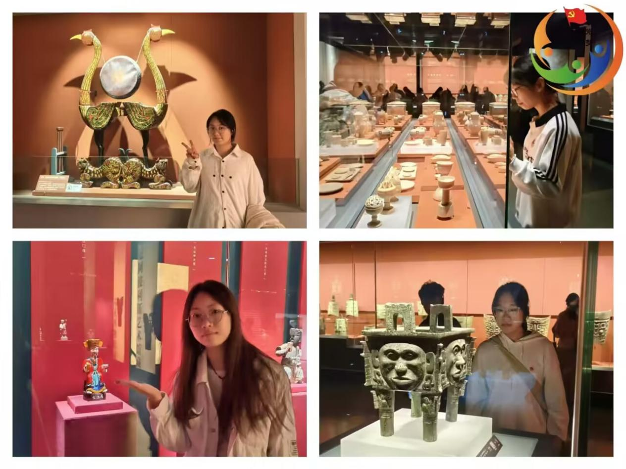 在湖南省博物馆基本陈列的参观中,通过进行一系列精心设计的活动,同学们深入探索了湖湘文化的精髓和红色精神的内涵。参观过程中大家一路好奇的拍照合影,有时认真倾听讲解员对文物的解读;有时停下来望着跨越千年的文物出神;有时兴奋的和同行的同学分享对文物的看法……在此过程中,他们不仅能被锻炼到观察力和创造力,也能通过与文物的互动更加深刻地感受到文化的厚重。