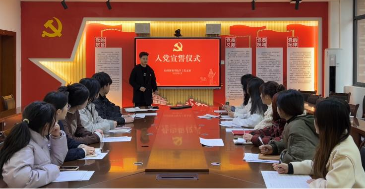 (通讯员 白一茜)为进一步强化学生党员的身份意识、责任意识和宗旨意识,激励他们在新时代展现新作为,为党和人民的事业贡献青春力量。2025年1月8日上午9时,经济贸易学院学工党支部于崇理楼406党员活动室组织开展2024年下学期发展党员宣誓仪式。此次活动由学生党员赵浪欣同志主持,经济贸易学院学工党支部全体党员、预备党员参与本次活动。