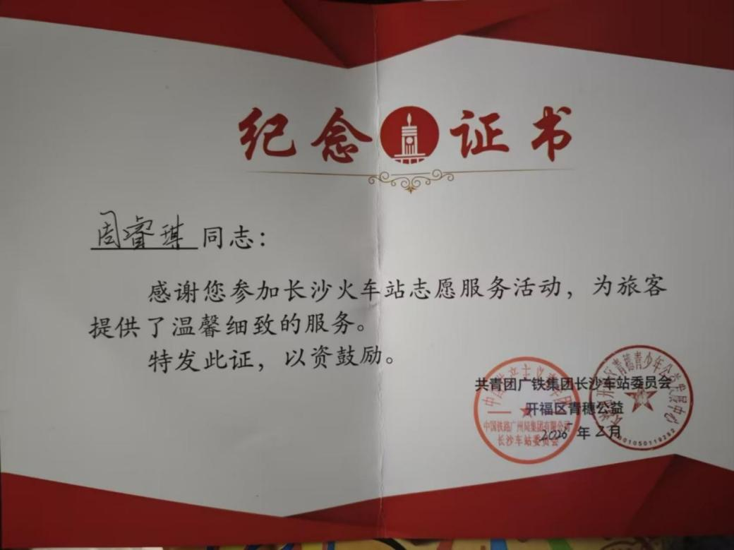 今年2月10日至20日,周睿琪选择前往湖南长沙火车站,积极参与“返家乡”志愿活动。面对繁忙的春运人流,她始终怀揣着对社会的责任感和对服务他人的热忱之心。周睿琪说:“我希望用自己的力量为旅客们带来便利与温暖,让这个寒假更有意义。”