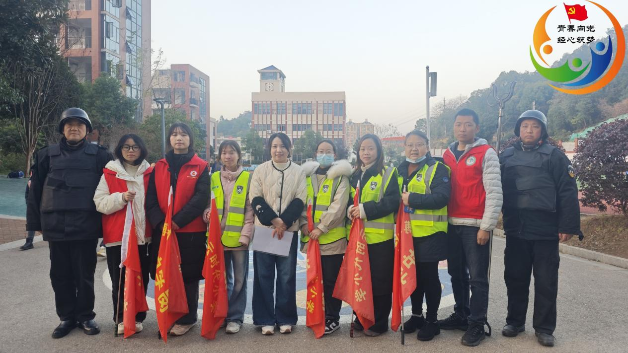 放学时分,另一场守护也在校门口同步展开。身穿荧光绿马甲与红色志愿服的大学生志愿者,与热心参与的家长共同组成“护学岗”,每天下午值守于校门两侧及路口斑马线前,疏导人流、引导交通、护送学生安全通过。