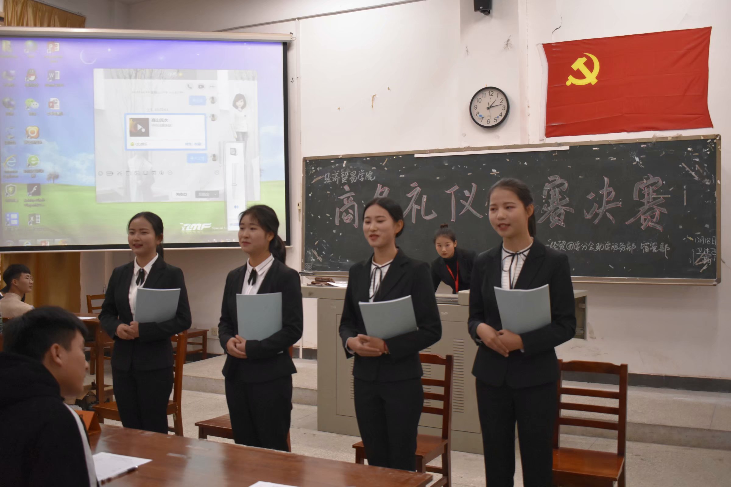 为提高同学们的个人素质和修养,打造一个展示自己风采的舞台。2018年12月19日中午12:15,由经贸学院助学服务部主办的第二届商务礼仪风采大赛决赛于二教101举行,评委出席本次活动为主席团、各部门部长。经过初赛的重重选拔,最终14支队伍进入决赛。