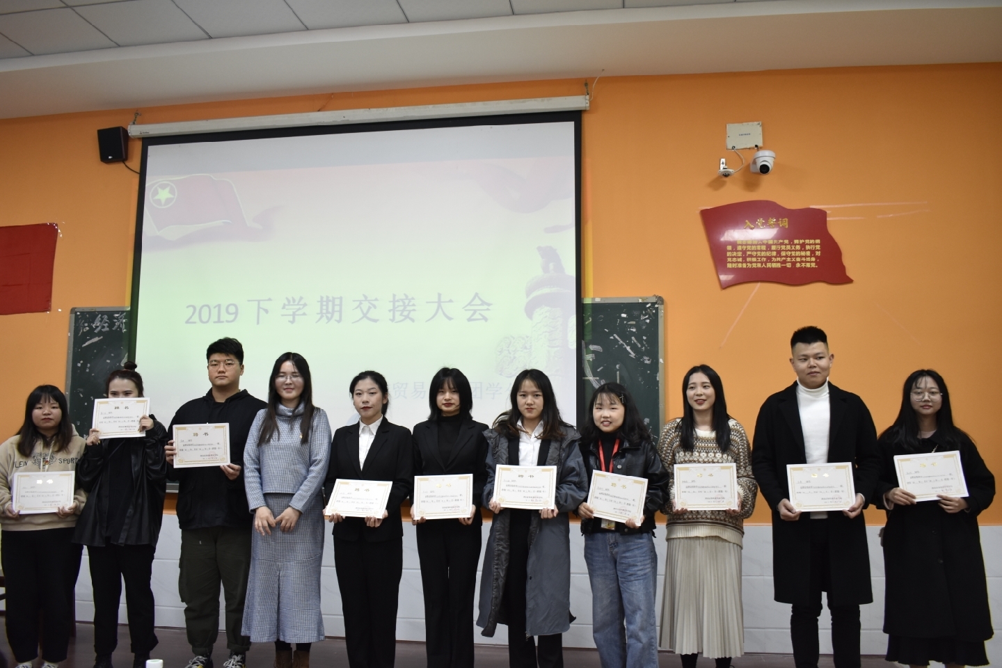 首先,方红梅老师给各个部门颁发聘书,肯定大家一年来对经济贸易学院团学分会作出的贡献。