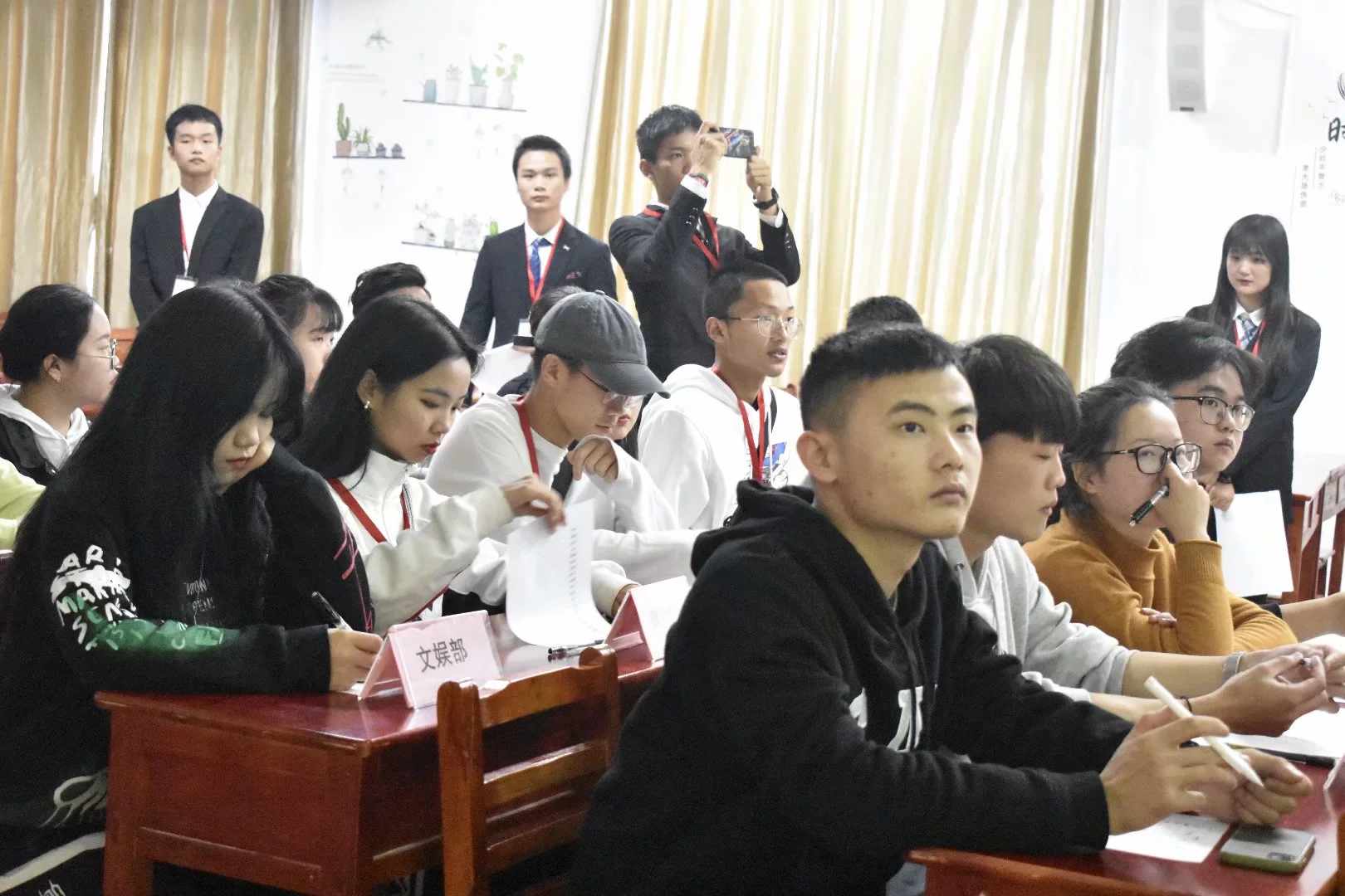 (通讯员:李嘉 摄影:杨佳林 责编:陈小丹)2019年11月15日中午12点30由经贸学院网文部主办,文娱部、助学服务部协办的“掠美身边,美在瞬间”摄影大赛在第一教401举行。届时邀请了主席团、部长级副部长担任此次活动评委。