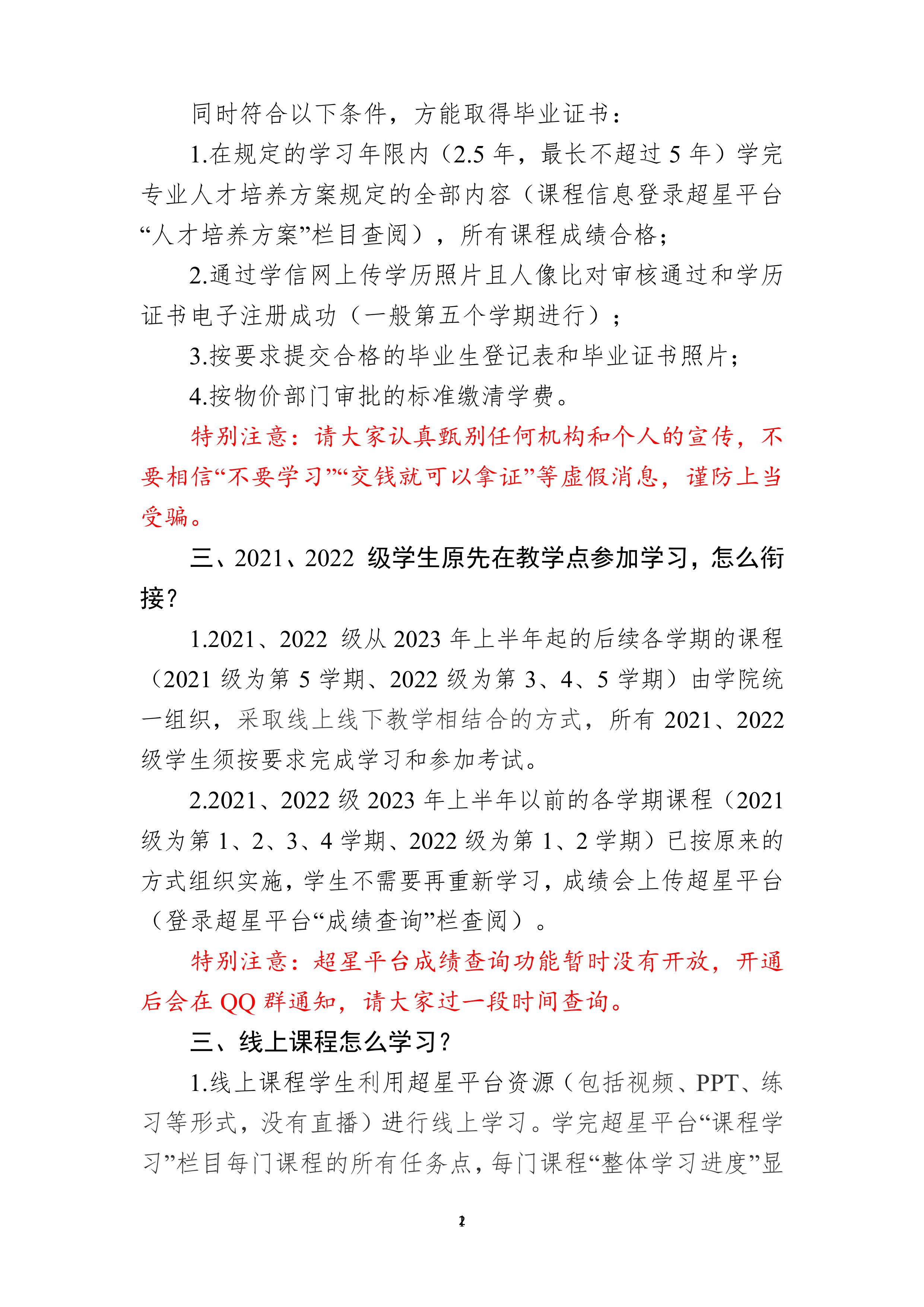 致成人高等学历教育学生及2023级报考考生的公告(第五号)