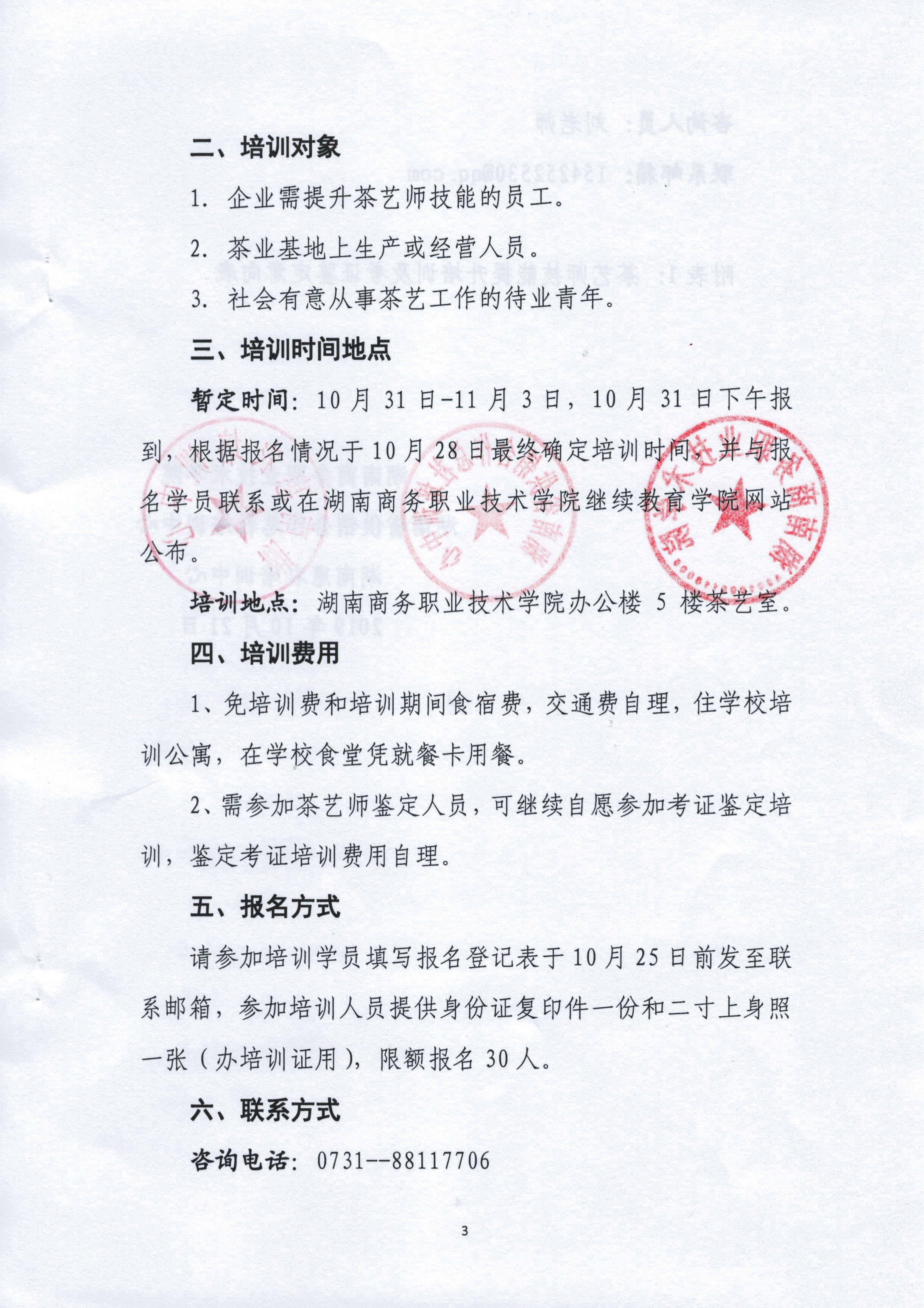 附表1:茶艺师技能提升培训及考证鉴定意向表