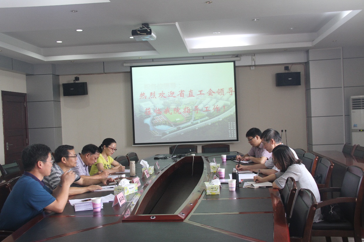 6月13日湖南省直工委副书记省直工会主席谢立三、省直帮扶中心副主任向鸿雁和省直工会办公室主任黄锦林一行来到我院,针对近年来学院农民工就业创业培训工作进行考察和调研。学院院长孔军山、院工会主席林国安、院工会副主席刘芳芳和继续教育部负责人一同参加。学院领导和相关部门负责人分别汇报了近几年学院开展农民工就业创业培训的情况并指出培训工作存在的问题和困难。谢主席在认真听取汇报后,充分肯定了近年来学院凭借自己的办学特色、师资和教学设施等优势为社会服务的成绩,特别是在农民工创业就业领域做出了不少贡献,认为培训工作管理到位、培训工种有特色、创业就业有成效;同时,对学院提出的问题谢主席明确表示将通过进一步调研,向相关部门反映,为学院开展农民工就业创业培训创造更好的条件和保障。