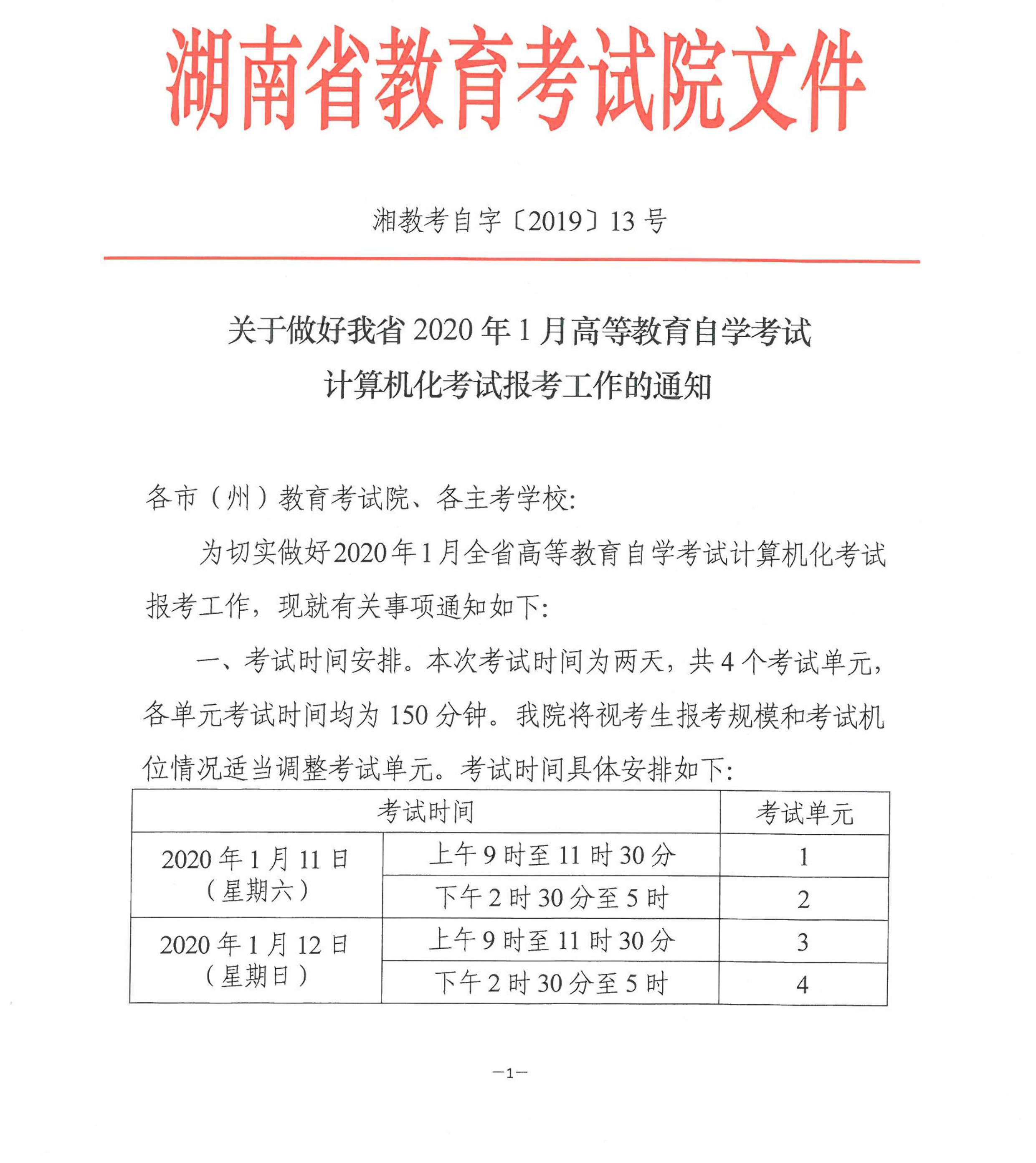 关于做好我省2020年1月高等教育自学考试计算机化考试报考工作的通知