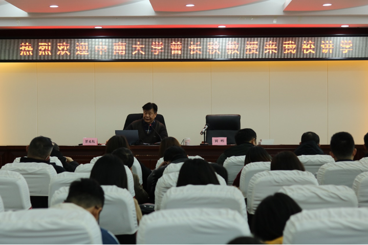 为深入贯彻落实习近平总书记关于在高校开展“四史”教育的指示精神,进一步弘扬湖湘红色文化,我校马克思主义学院特邀请著名红色文化研究专家、中南大学曾长秋教授前来讲学。12月1日下午2点,学校办公楼六楼职工会议室济济一堂,座无虚席,聆听讲座的教师和学生全神贯注,被精彩的内容深深吸引。