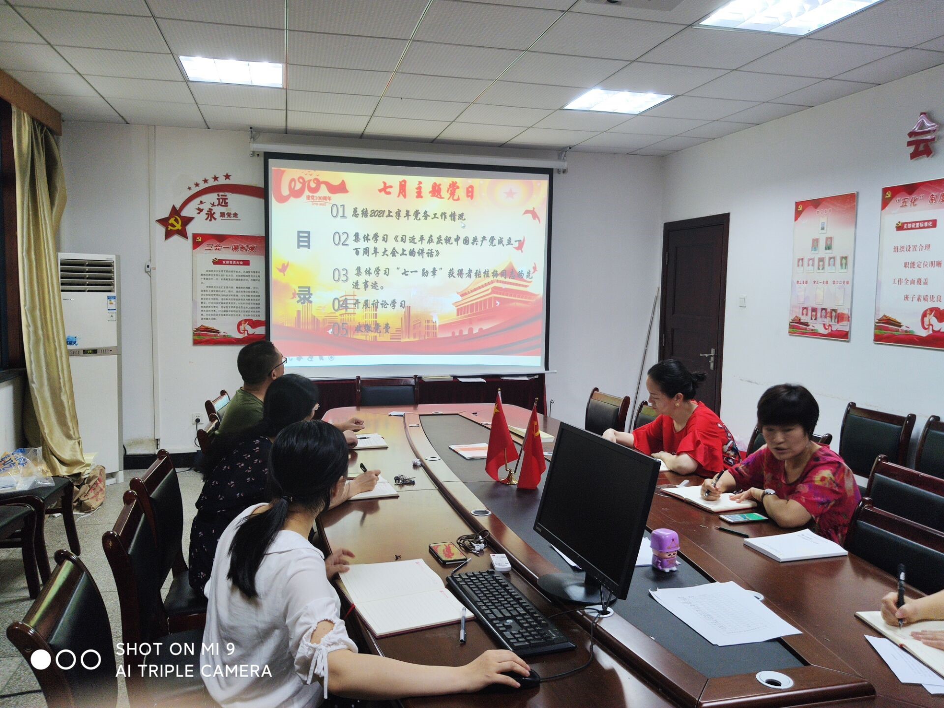 接着,集体学习《习近平在庆祝中国共产党成立一百周年大会上的讲话》。纪检委员刘浩章同志在会上强调:我们要深刻领会习近平总书记重要讲话的精神实质和丰富内涵,迅速把思想和行动统一到讲话精神上来。要深刻领会我们党100年来为实现中华民族伟大复兴团结带领中国人民创造的伟大成就,深刻领会伟大建党精神,深刻领会我们党在不断探索中总结形成的历史经验,准确把握“九个必须”的精髓要义和实践要求。