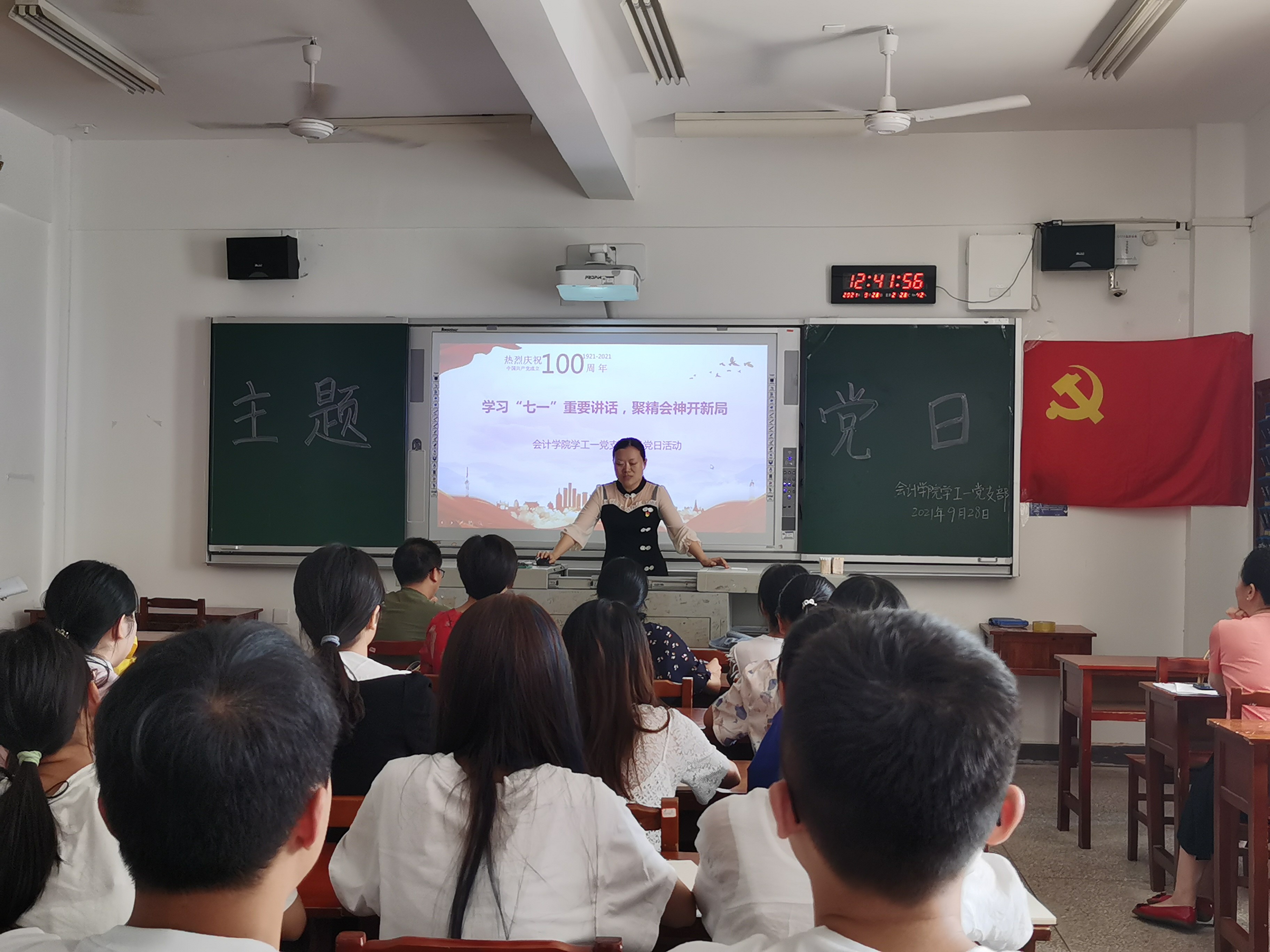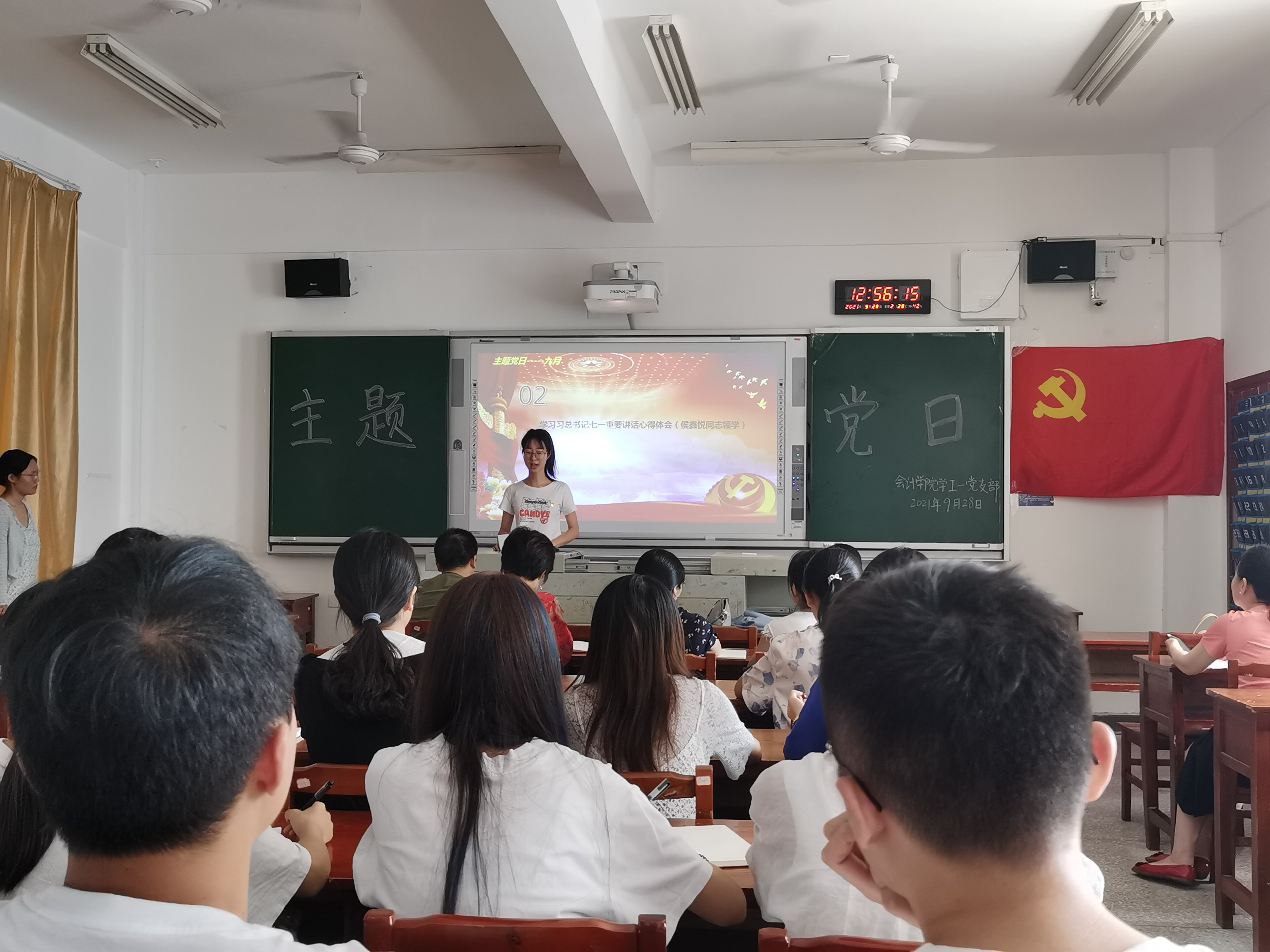9月28日12:40,会计学院学工一党支部在二教204举行了主题为“学习上级文件通知及领导重要讲话精神”九月份主题党日,全体党员参加了此次活动。