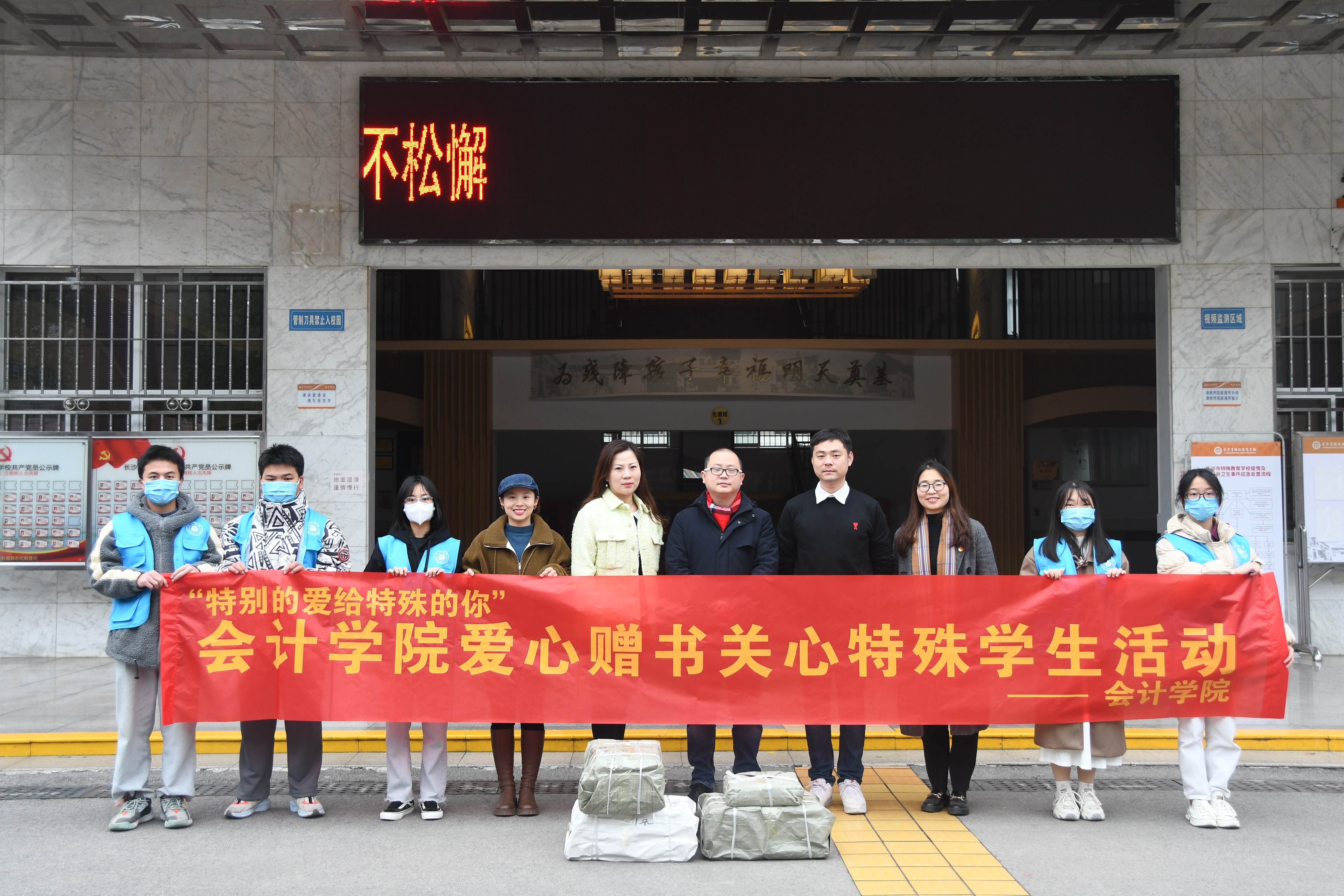 为传承志愿服务文化,弘扬志愿服务精神,12月16日9:00,会计学院党总支副书记林达、学工二党支部书记浣晓璐带领学生志愿者前往长沙特殊教育学校开展“爱心赠书关心特殊学生”志愿活动,开启了一次特殊的旅程。