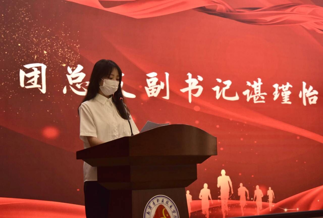 大会第五项,优秀团员代表陈琪凤发言。她指出我们作为当代青年要有理想、有抱负、有作为,要充分发扬和传承五四精神,积极承担时代使命,并呼吁我院学子应当继续奋勇争先,不负青春,树立理想,努力成为堪负民族复兴重任的新时代接班人。