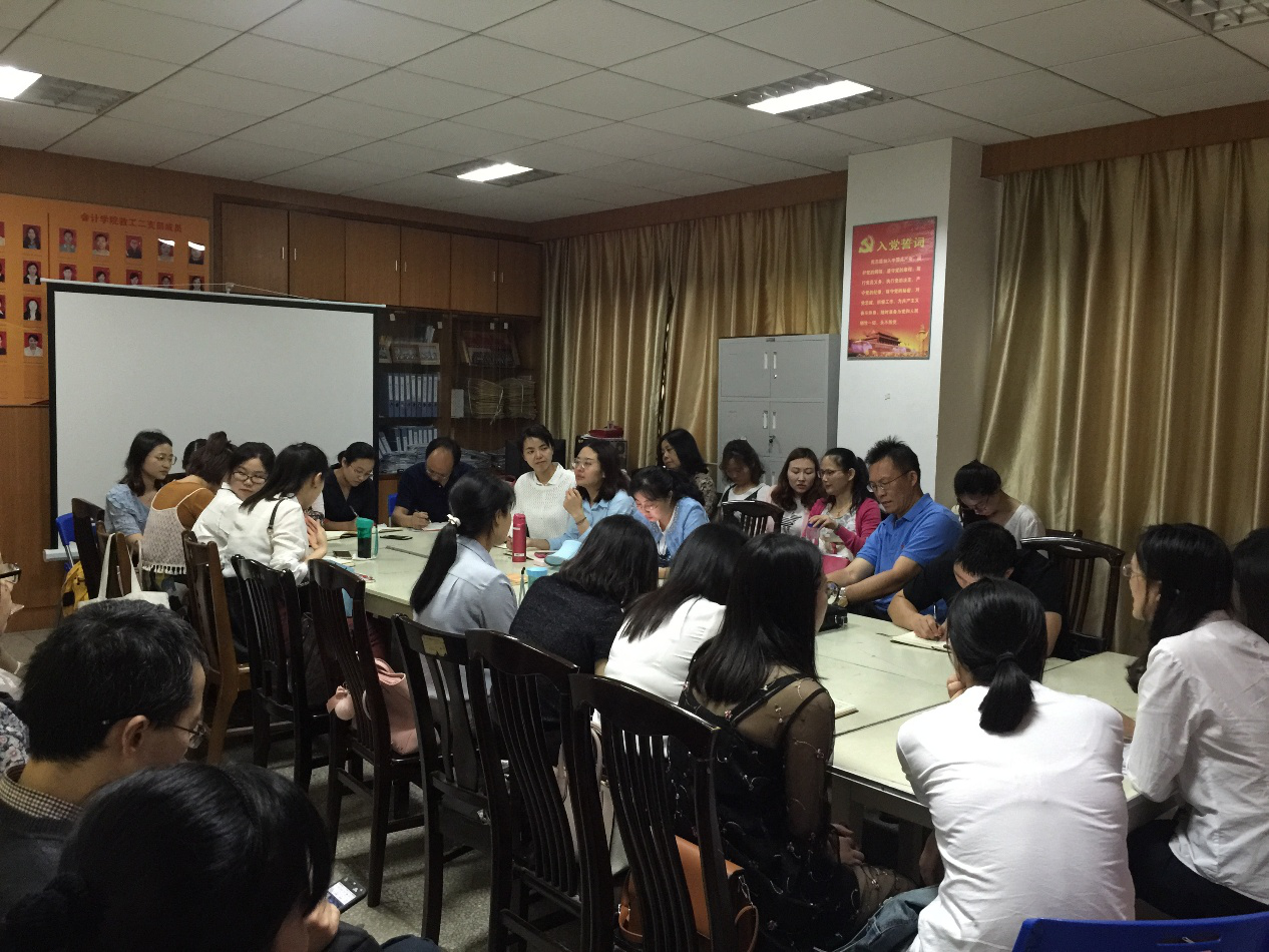 2018年5月7日1点30分,会计学院教工支部全体党员在B319召开支部主题党日《推进党支部“五化建设”的学习》,本次活动由支部书记杨小燕主讲。