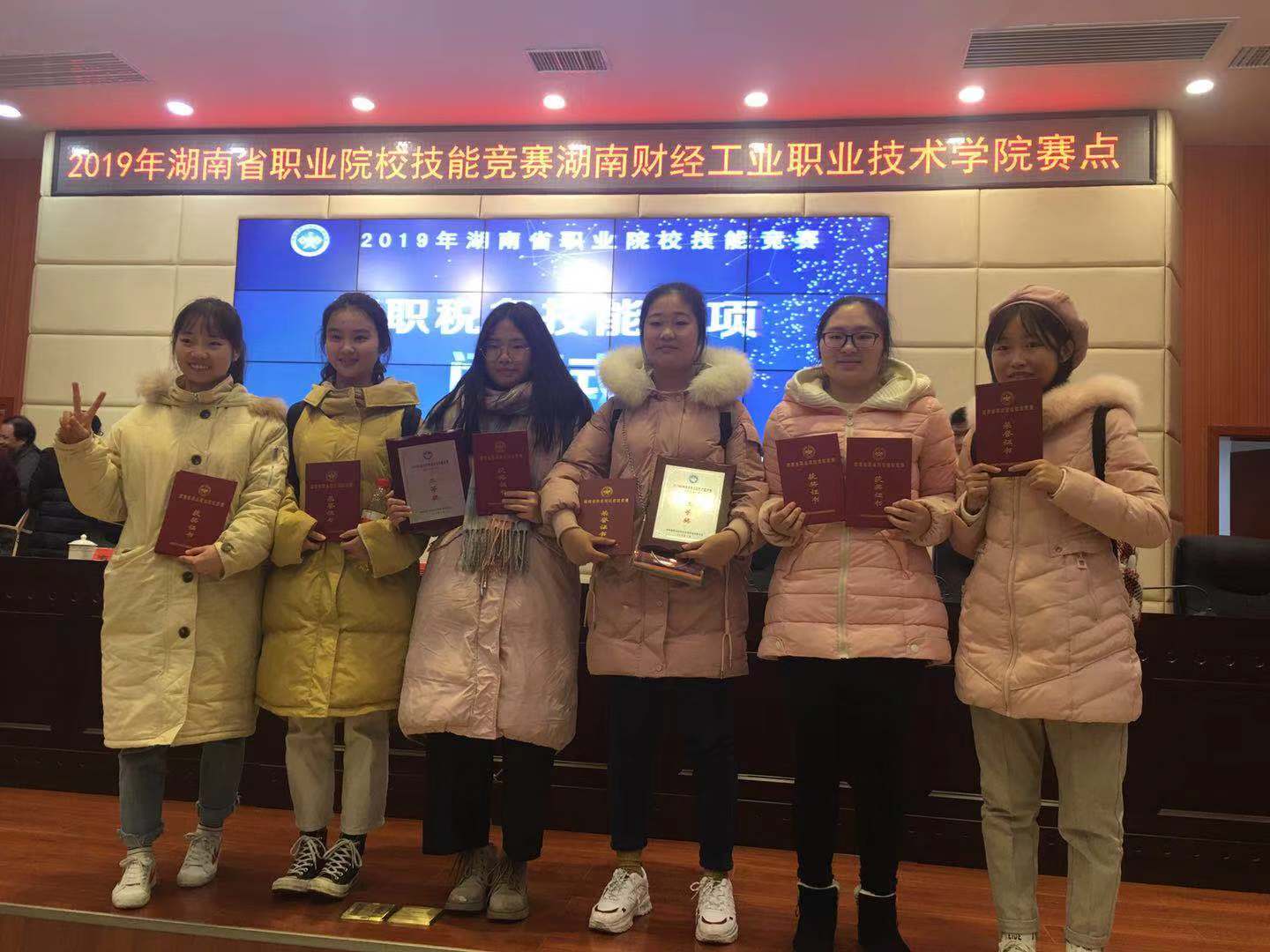 廖妍姣、张镱凡老师指导学生获得2019年湖南省职业院校技能“竞赛高职组税务技能项目”二等奖。