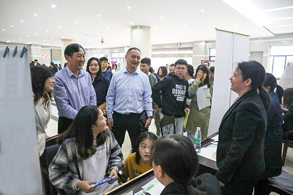 ▲岳麓区人社局党组成员朱能文、校党委书记周忠新、党委委员禹明华等亲临现场,看望慰问参会企业和学生
