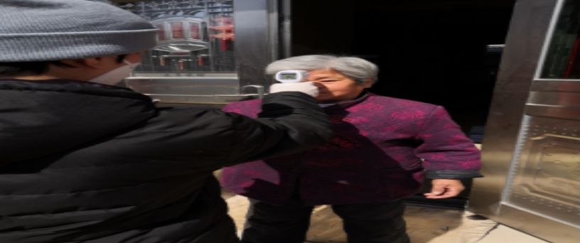 会计学院统计与会计核算专业,18统会2班詹涣月同学牺牲陪伴家人的时光,在黄冈当志愿者,为进出人员量体温。