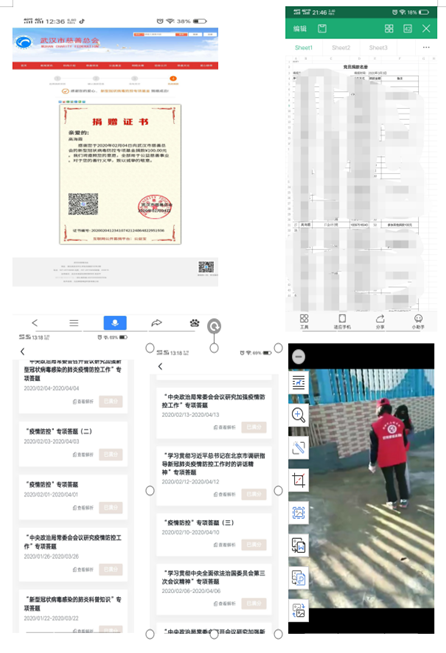 会计学院会计专业,17会计2班高海霞同学,通过武汉市慈善总会的官网捐款,在学校党支部线上开展党日活动时,通过支委捐款。身为预备党员,高海霞同学积极响应党的号召,认真学习《关于坚决打赢新型冠状病毒感染肺炎疫情防控阻击战 充分发挥基层党组织战斗堡垒作用和党员先锋模范作用的通知》,春节期间家庭全部聚餐取消,家中消毒,不逛街不访友,必要出门时戴口罩,并在家族群内倡导家人做好防护措施,积极配合工作。坚持每日的《学习强国》学习,时刻关注疫情相关的新闻。在疫情期间,参与村委会组织的疫情防控卫生大清扫志愿者服务活动。