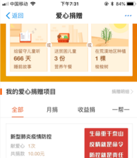 5.在支付宝上参与爱心捐赠。