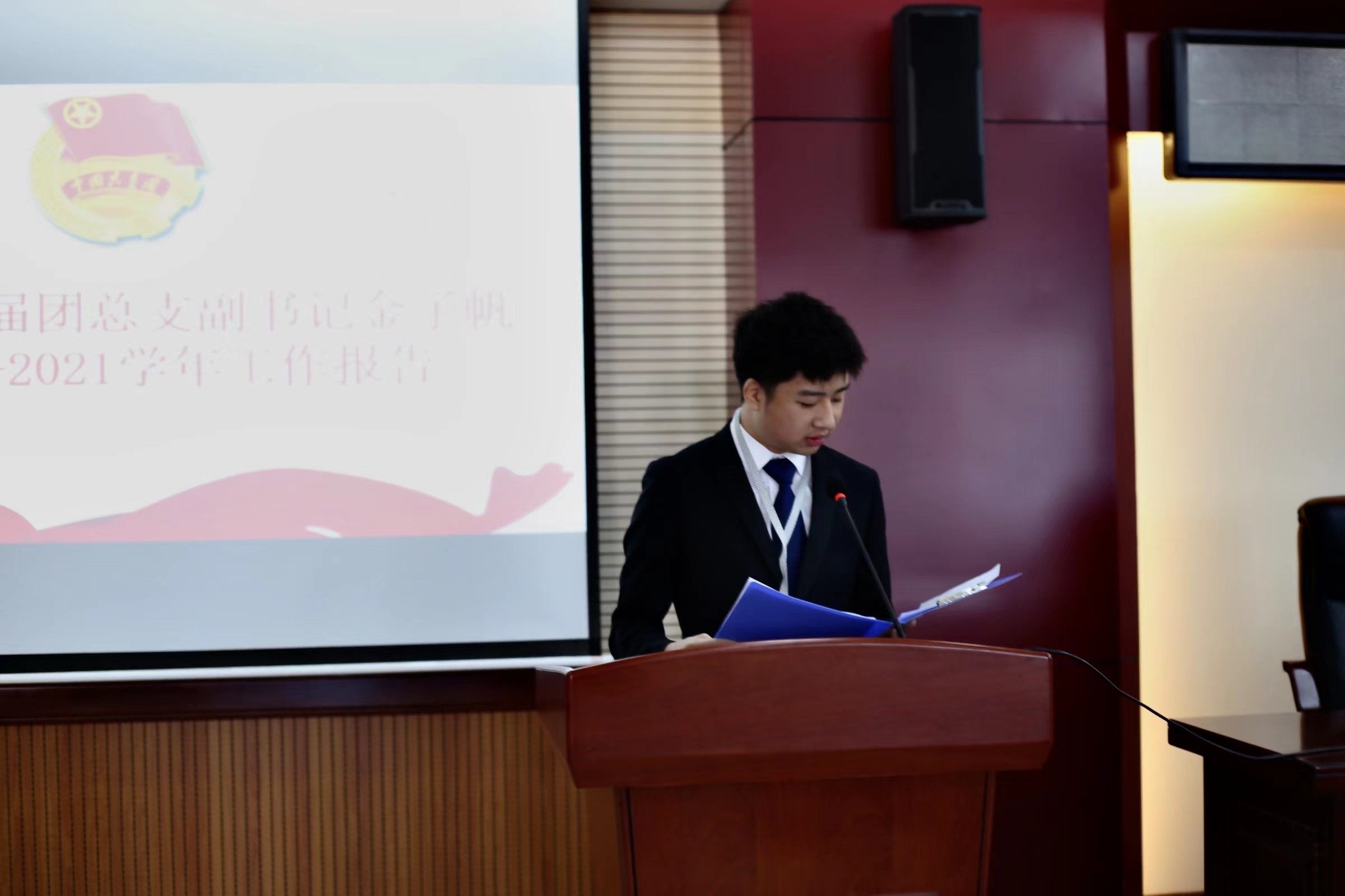 他在报告中对第十七届团学分会干部的辛勤付出表示感谢,并表示会沿着上一届团学分会干部奋斗过的足迹,进一步改革创新,力争上游。