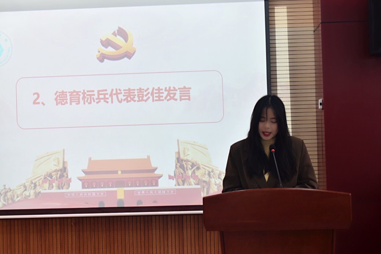 道德风尚奖代表戴桢浈同学分享了两点参与实践的心得:一是向道德模范学习,时时处处以道德模范为榜样;二是积极参加志愿服务活动,在实践中感受善的力量。德育标兵代表彭佳同学、三好学生代表罗心雨同学、优秀班干部代表姚再明同学3人都谈到,大学生要积极参加活动,丰富自身阅历;向模范学习,汲取正能量;立足当下,扎实学好专业知识,以过硬的综合素质勇敢肩负起当代大学生的使命和责任。