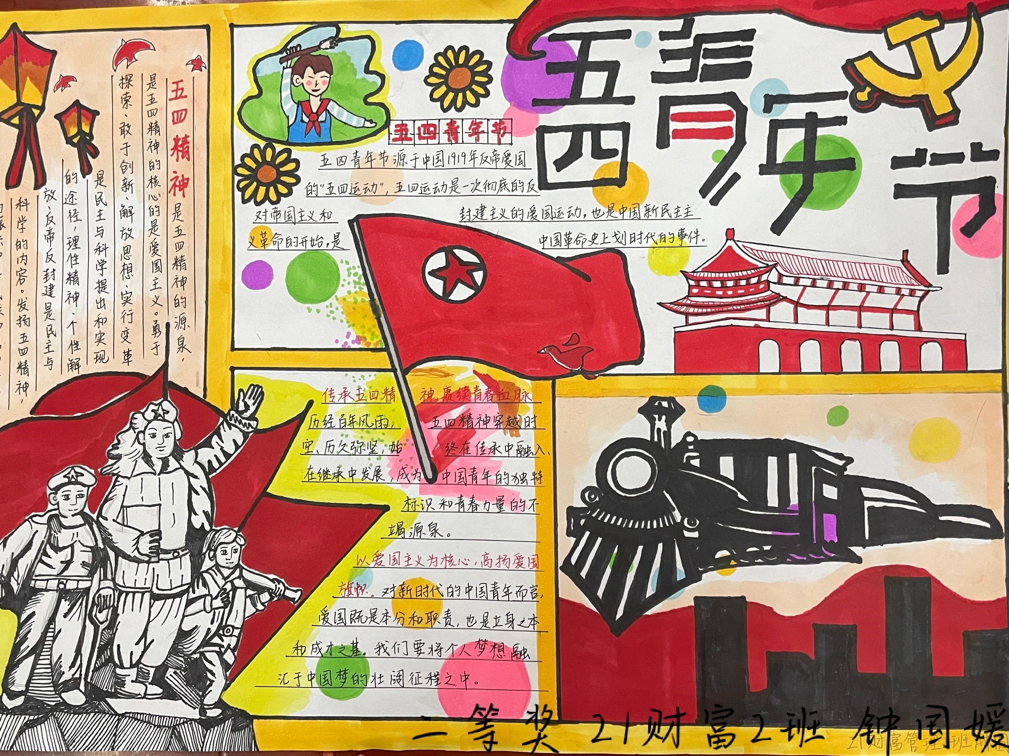 历时7天的作品准备,让同学们拥有足够充足的时间准备和修正参赛作品。选手们积极的收集关于五四运动、爱国英雄等相关资料,采用文字或绘画的形式将自己心中的想法和场景呈现出来。有的作品借以文字的形式述说着自己的爱国情怀,扬起五四风帆,祖国未来我守护;有的作品以图画勾绘着祖国的精彩、青年的未来。