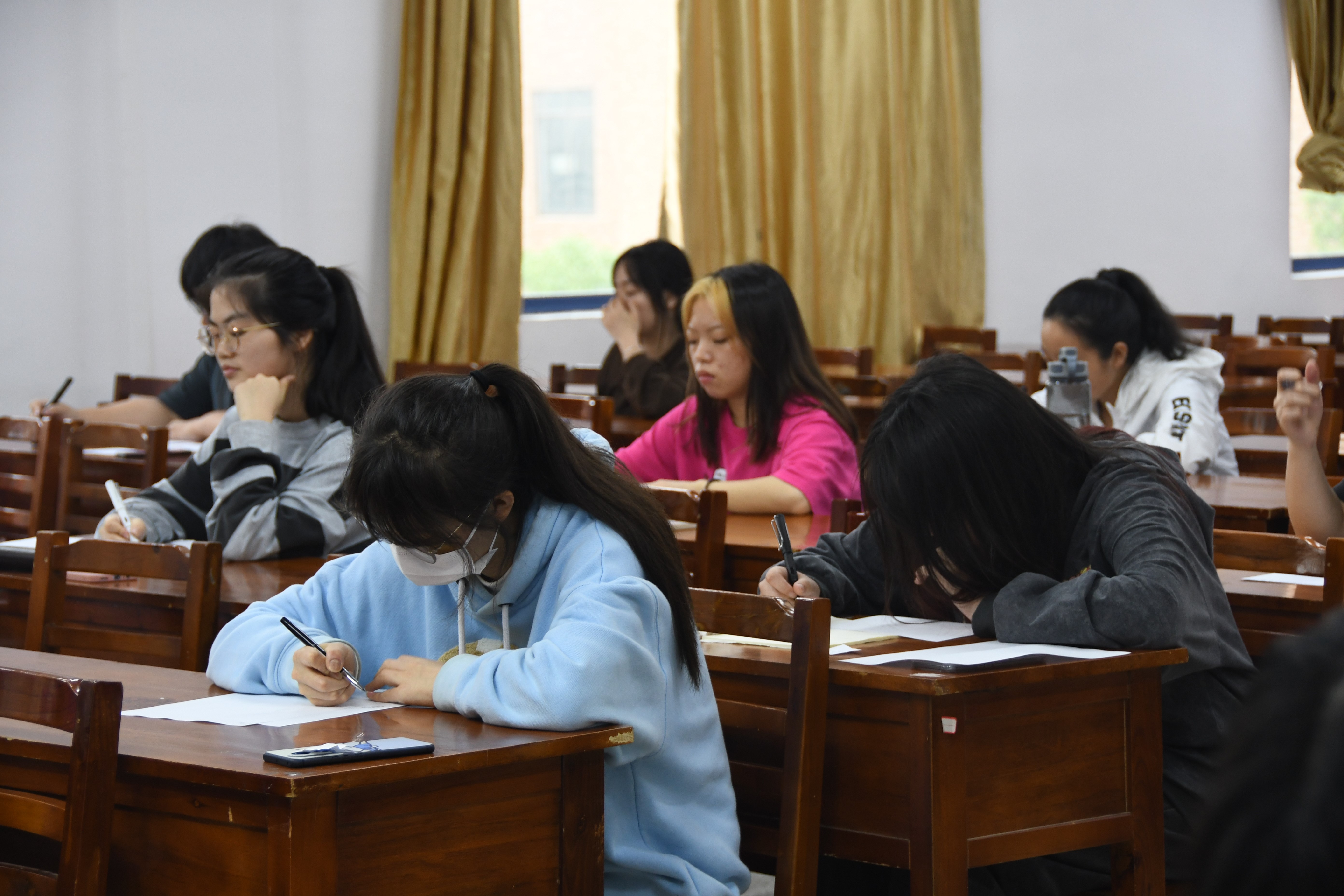 经过初赛的选拔,共有25位选手晋级决赛。12:50,选手们按照抽取的序号牌依次入座,主持人在宣读赛场秩序及比赛规则后,决赛正式开始。各选手手执钢笔书写,以“漫卷诗书喜欲狂”为主题,创作一首诗或写一段话。