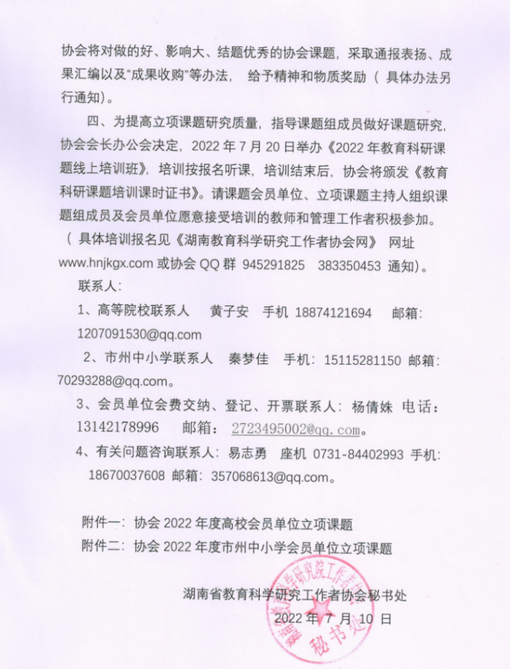 2022年7月10日,我院薛之骞、向乐娃两位老师成功立项2022年度湖南省教育科学研究者工作协会课题。