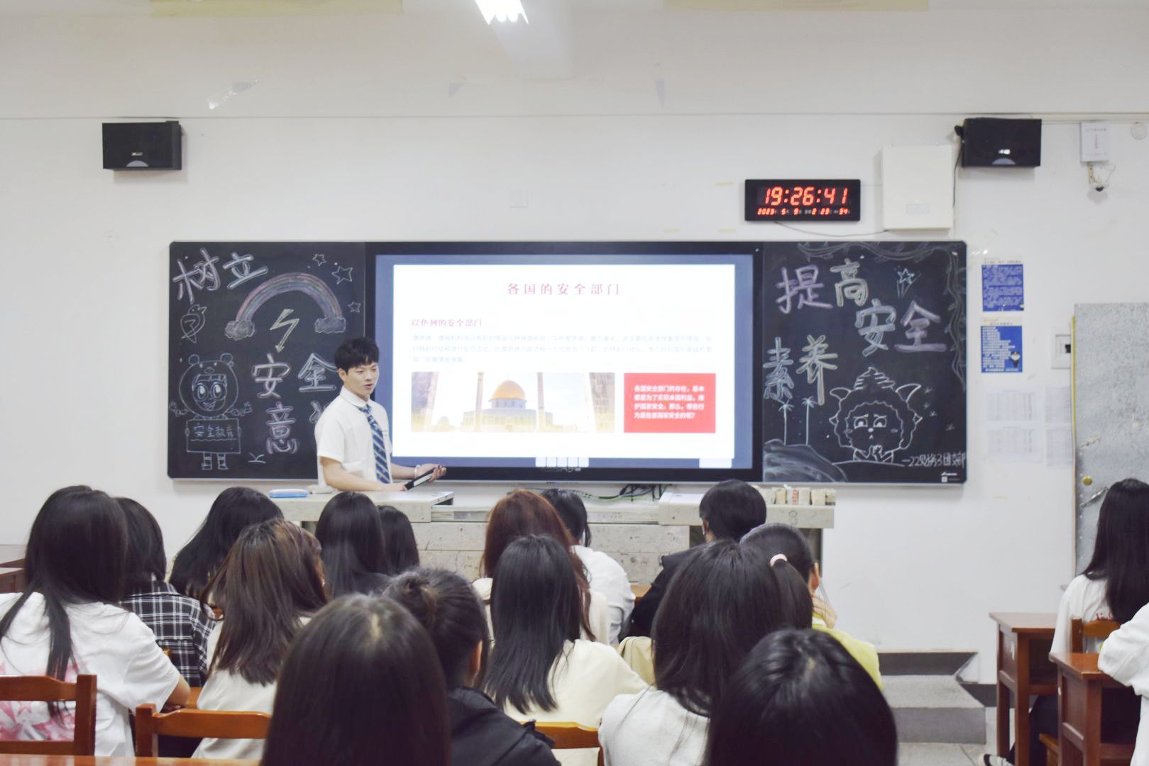 活动伊始,同学们全体起立,共唱《光荣啊!中国共青团》团歌。各班团支书从国家安全教育、当前国际、国内形势和如何维护国家安全等方面展开,向同学们讲解了国家安全日的由来以及设立国家安全日的重要意义。