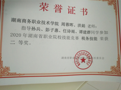 我院学生在2020年湖南省职业院校技能竞赛(税务技能)大赛中分别荣获二等