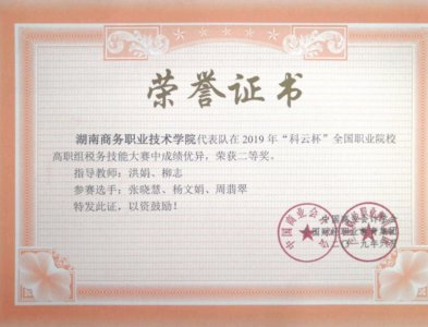 我院洪娟、柳志老师指导学生荣获2019年 “科云杯”全国职业院校高职组税务