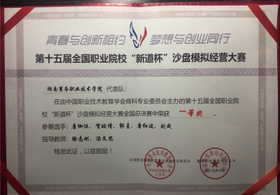 2019年9月,我院徐志刚老师在2019年湖南省职业院校技能竞赛高职组互联网+企业经营管理技能(团体赛)中荣获优秀指导教师奖;张亚清老师在2019年湖南…【查看全文】