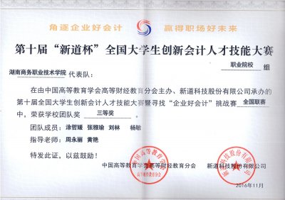 会计学院学生荣获2016年第十届新道杯全国大学生创新会计人才技能大赛国赛