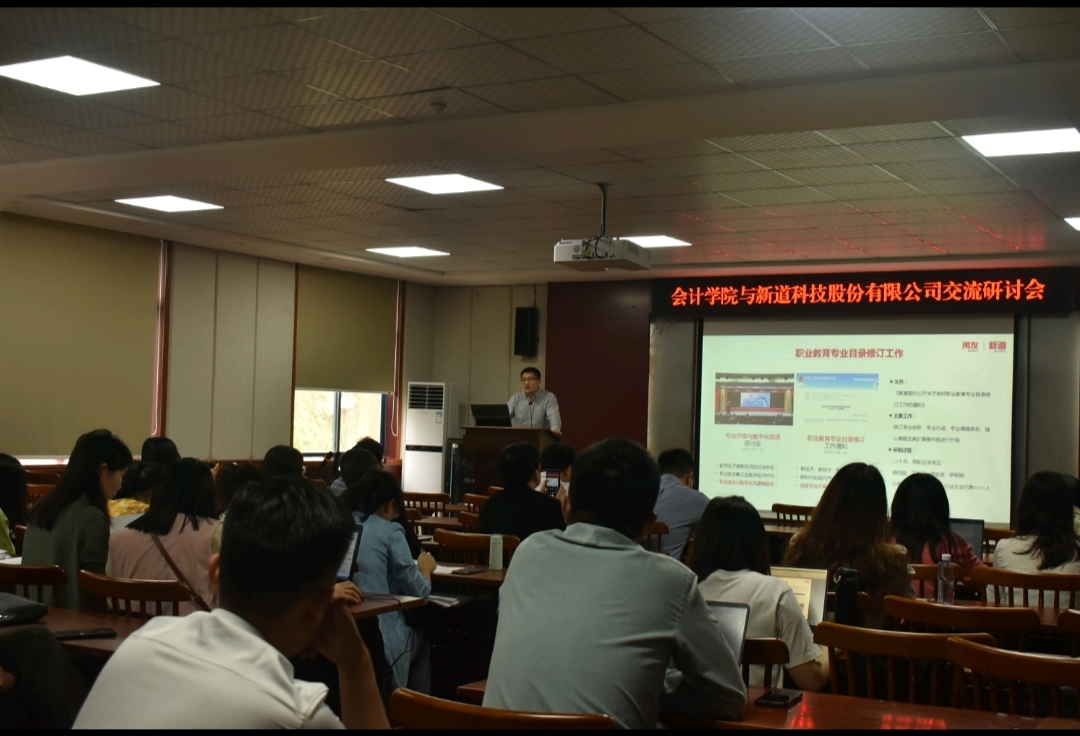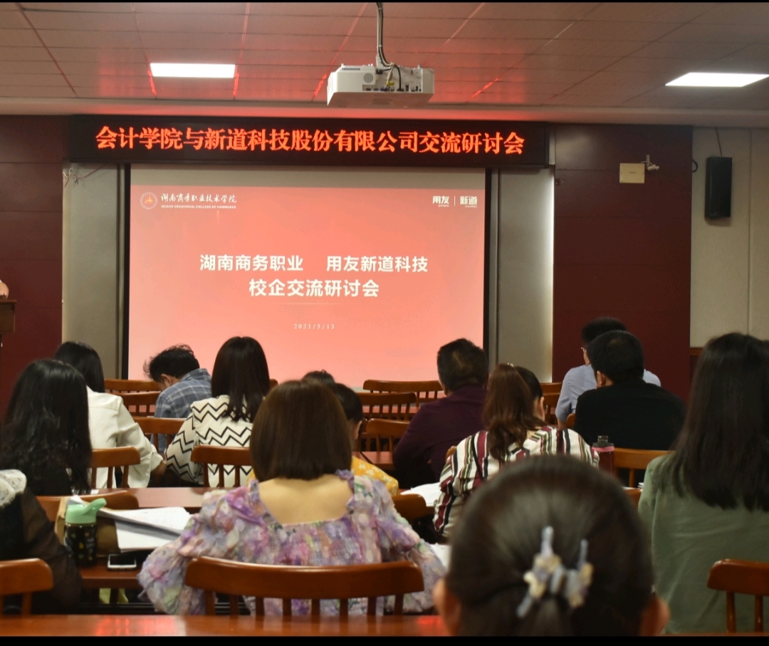 2021年5月13日下午14:30分,湖南商务职业技术学院会计学院与新道科技股份有限公司交流研讨会在二教201报告厅成功举办,我校会计学院教师参加本次会议。