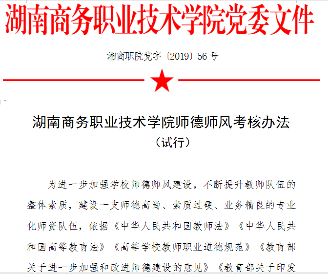 湖南商务职业技术学院师德师风考核办法 (试行)…【查看全文】
