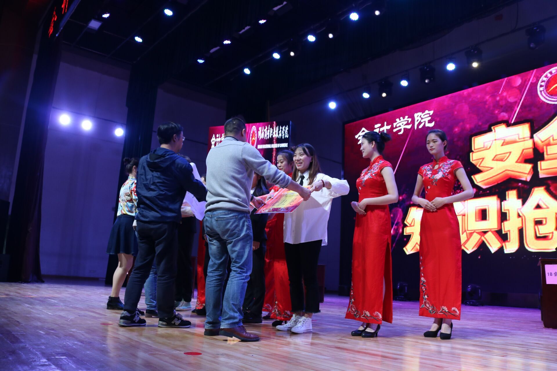 由我校会计学院治保部组织开展的安全知识抢答赛决赛于2019年5月30日晚19:30在体育馆举行,参与此次比赛的对象主要为会计学院全体大一同学。此次安全知识竞赛的目的在于通过知识竞赛的形式,可以加深同学们对安全知识的了解,增强理论知识运用于实际生活的能力,通过此次活动,搭建同学们与学校安全问题的交流平台,激发同学们的安全意识,提高自我保护能力。