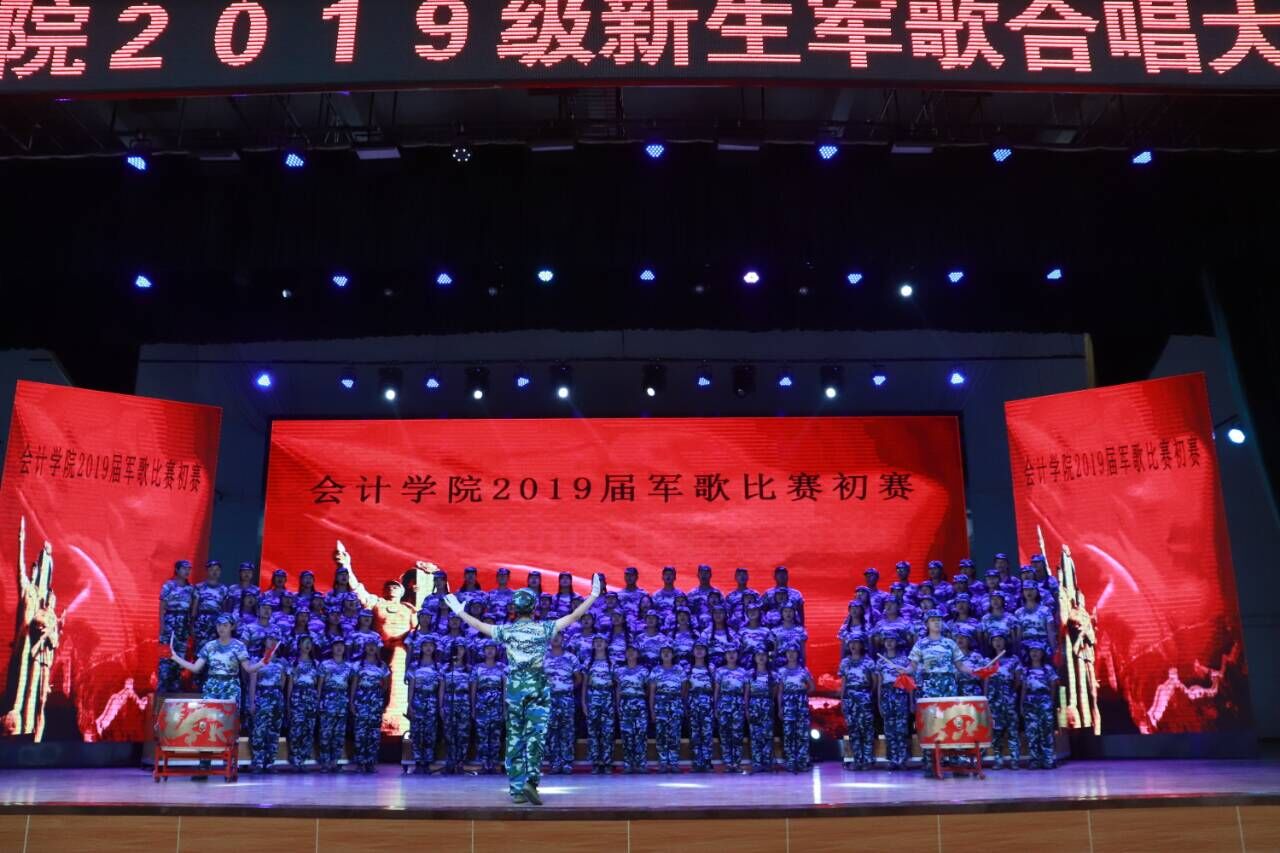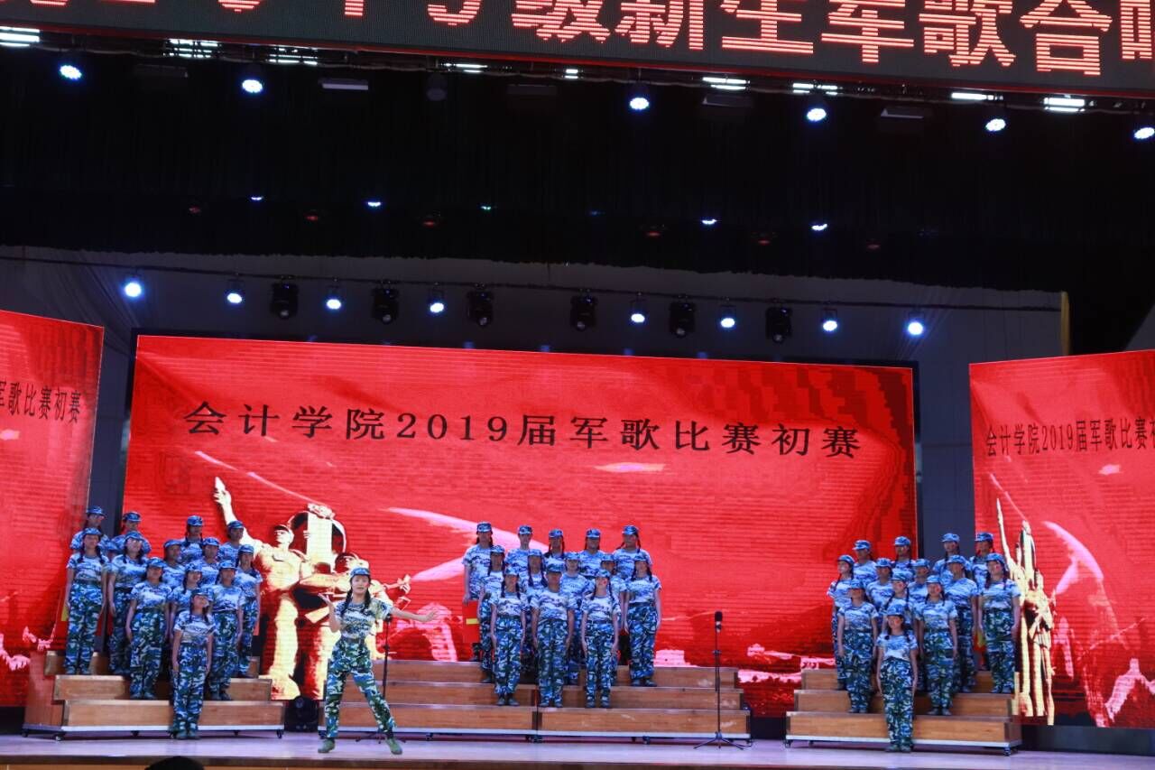 军训在如火如荼地进行中,2019新生军歌大合唱比赛也如约而至,今年是中华人民共和国成立70周年,会计学院文娱部以弘扬爱国主义精神为主创办了此次“军歌嘹亮,砥砺前行”为主题的歌唱比赛。合唱比赛对2019级新生来说无疑不是一场团队的协作比赛,在短短不足一周的时间里拿出班级合唱的最佳水平,是一次挑战,也是一次加深同学了解的机会。新生同踩一声步调,同顶一个烈日,同享一份默契,唱响同一首军歌。军歌嘹亮,唱响了爱党卫国的忠诚。军歌嘹亮,唱响了爱军习武的责任。比赛的中途,文娱骨干团给大家带来了一首《等你下课》,给还未上场比赛的小伙伴们加油打气!